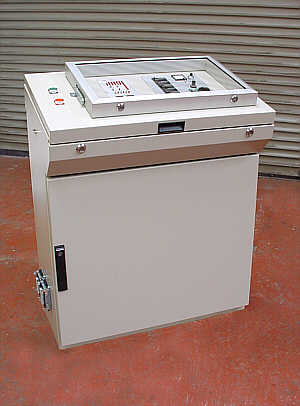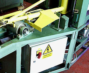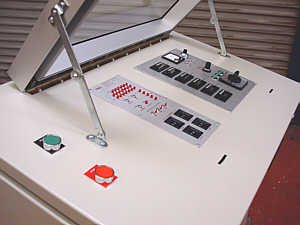 As part of the modification all of the electronic control systems are taken out of the machine and housed in a freestanding control console, this isolates them from sawdust, water and any other contamination. The original TTL control unit which was housed in the machine is replaced with a programmable logic controller (P.L.C.) this unit gives a much higher level of long-term reliability over the hard wired TTL control units. |