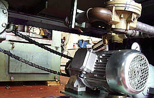 The existing variable speed gearbox (mechanical type) is replaced with a standard motor, the speed of the motor is controlled by the variable frequency inverter located in the three-phase power supply cabinet. |