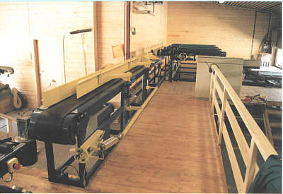 A heavy duty belt conveyor equipped with a moving guide mechanism designed to keep the timber upright until it has entered the strength testing machine. On entry to the machine the guide will automatically be removed to prevent interference with the grading process.