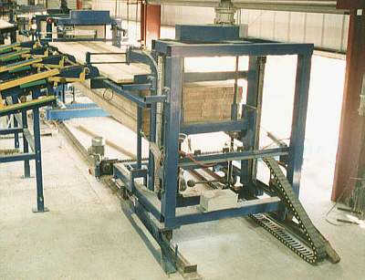 Successive boards are transferred to the Auto Stacker which accommodates 5 boards in width and up to 25 layers in depth (normally set to 20). The stacker automatically discharges the full stack of timber via a chain conveyor enabling a relatively constant feeding operation.