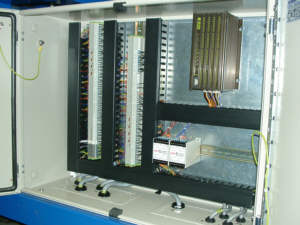 An Eberle PLS 511-03-S programmable controller controls the Speedband Mk3. The developed program is held permanently on a static RAM card and all input and outputs can be monitored visually on the front face of the PLC by LED indicators. The PLC offers the advantage of being a simple ‘plug-in’ unit should substitution be necessary during maintenance.