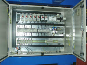 The 511-03-S PLC is mounted inside one of the two main electrical cabinets, this lockable sealed enclosure keeps the PLC and its accompanying electronics safe from any environmental problems such as moisture or timber debris.